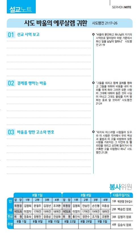 8월 1일 교회주보